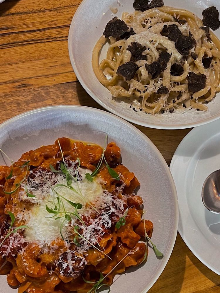 麵條吸附著濃郁醬汁,黑松露醬與白松露醬香氣四溢
