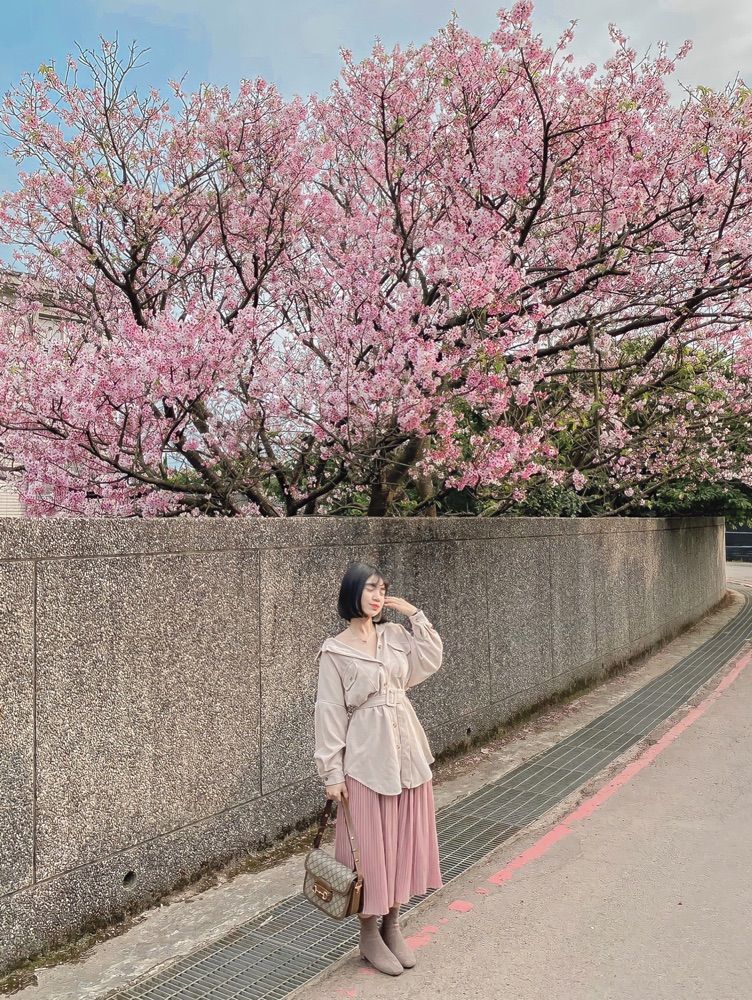 春天來了!怎麼可以少了櫻花🌸陽明山平菁街46號櫻花一定要去看看🥺#初春穿搭 #初春裙裝大賞 #你今天PO了嗎 #穿搭 #OOTD