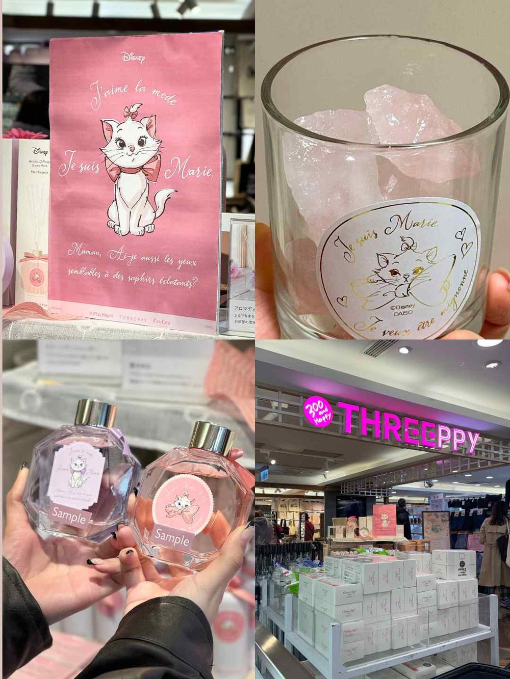 THREEPPY超可愛的世紀聯名瑪麗貓香氛!!光看那個鑽石瓶身就受不了~搭配透明粉瓶跟紫瓶,還有中間不同表情動作的瑪麗貓,真的太可愛!!香味更有兩款魅力花香、優雅花香,覺得無法選擇時,兩款都入也是很可以的。