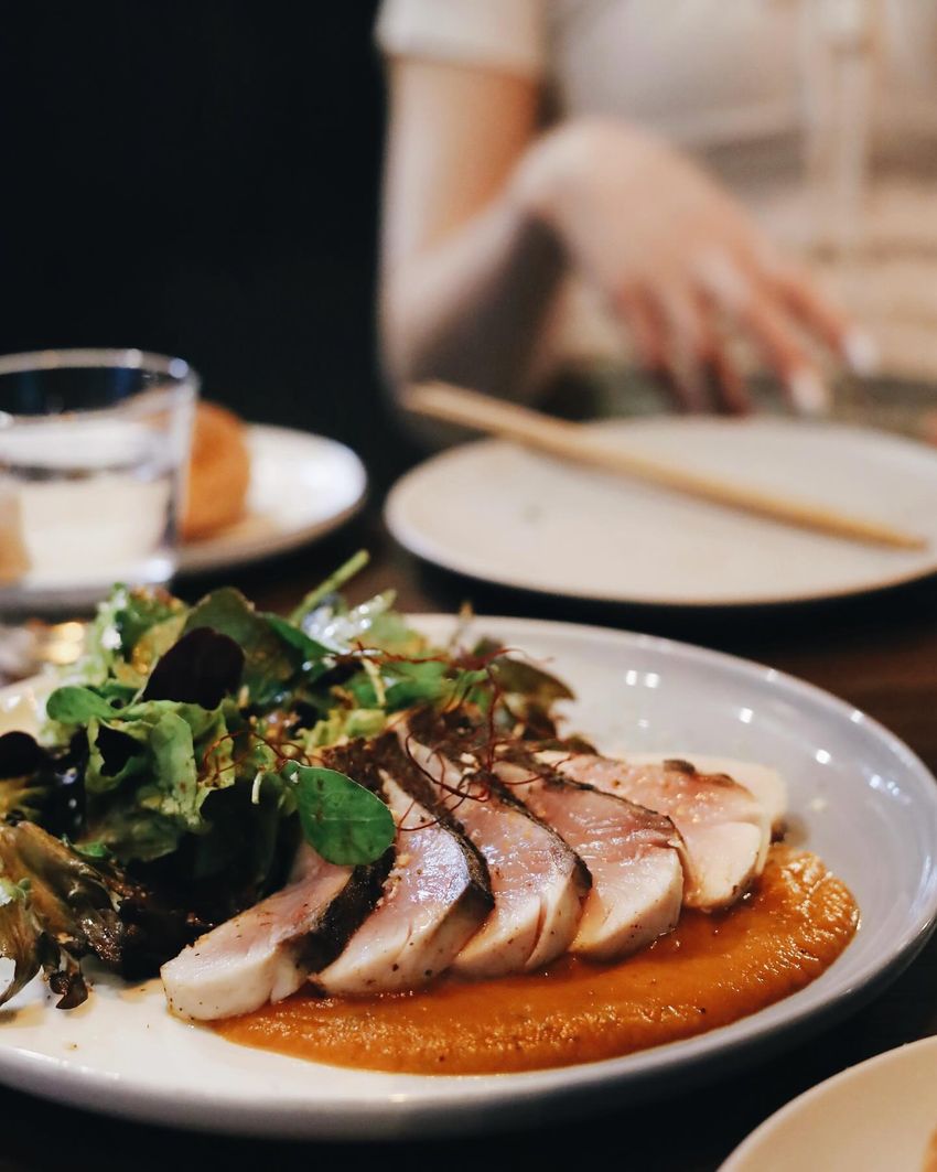 文火的海鮮又更升級了,經炙燒的脆皮、半生熟度的肉更帶出油脂的香氣,佐以清爽微甜的南瓜蔬菜泥,來一碗白飯吧。