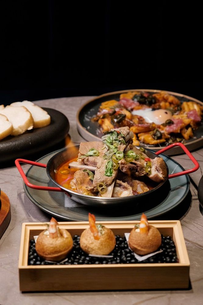 <Run Round Bistro 奔跑小酒館> #新開幕 *K歌之王$360*以茶會友$400*晨間雨露 $360*大人的軟糖$350*攪和攪和 $320*火山排骨 $540*酪梨鮮蝦脆球 $240*西班牙蒜味蝦 $380*辣肉醬皮蛋薯格格 $260*法式普羅旺斯燉菜 $280*干貝海膽義式燉飯 $480*櫻花蝦干貝法式吐司 $260——————————————#煦那皮吃台北 #煦那皮吃餐酒館府中新開了間餐酒館,餐點都超級漂亮以外東西也都很好吃~店內也都呼應店名有各種可愛的奔跑小人~先來推薦他家的酒,真的每一款都太漂亮,不只漂亮以外還好喝,而且都很有特色,個人最推,以茶會友,煙霧瀰漫的視覺效果就讓我當場驚呼實在太漂亮,酒也是喝起來很順口~餐點也是每一款都很好吃,會當場冒火的火山排骨,排骨每一塊都超大塊,肉很多,肉食控必點,還有會冒煙的攪和,裡面是牛舌、牛筋,牛肚的組合吃起來酸爽開胃,很適合當下酒菜,超級喜歡~另外干貝法式吐司或者是酪梨鮮蝦脆球,都很適合喝酒配,份量很剛好!主食的話推薦,干貝海膽燉飯,飯吃起來很鮮,干貝熟度也很剛好~整體環境很舒服,椅子很好坐,很適合下班後過來吃吃飯喝酒,餐點漂亮食物好吃!——————————————🏠日~四 17:30~1:30 五六 17:30~2:30🚇捷運府中站,步行約6分鐘📍新北市板橋區館前西路44號☎️02-8953-9393#奔跑小酒館 #奔跑吧 #台北美食 #新北美食 #板橋美食 #板橋餐酒館 #府中 #府中美食 #taipei #taipeifood #food #foodporn #foodphotography #yummy #餐酒館 #酒館 #小酒館 #酒吧#調酒 #異國料理 #板橋酒吧 #包場 #聚餐 #慶生 #公司聚餐 #7月POPO創作者分享