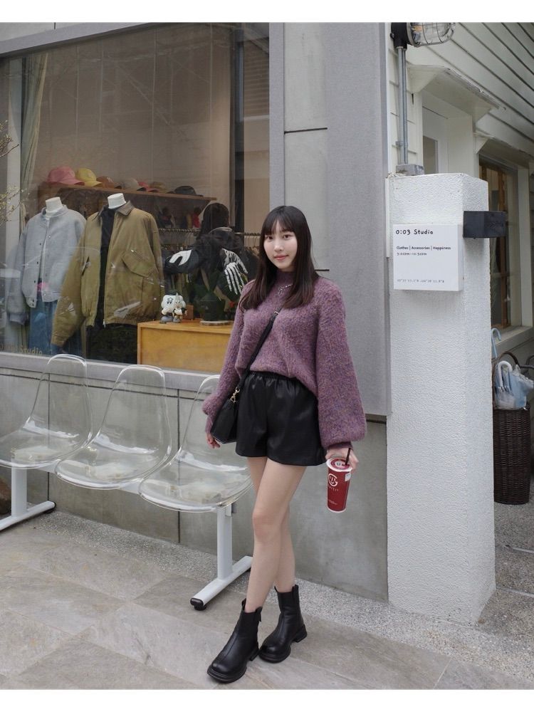 過年想要增添一點喜氣,穿紫色混色毛衣🍇
