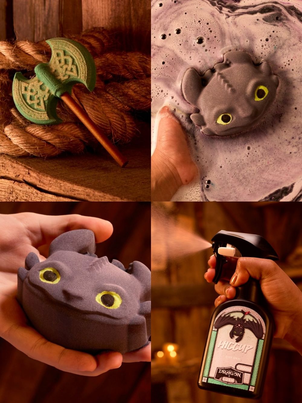 從博克島飛進浴室!LUSH最夢幻《馴龍高手》聯名香氛巨作,沒牙汽泡彈、斧頭泡泡浴芭、小嗝嗝香氛噴霧...,太有臨場感了