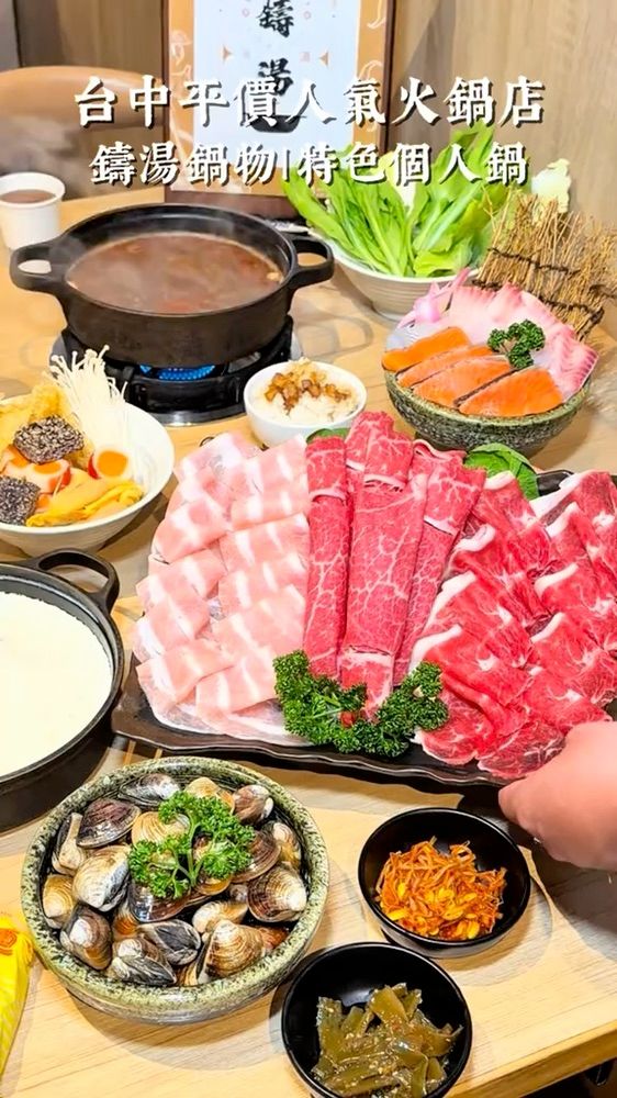 #肥肥愛吃台中午晚餐🥄 / 🔻鑄湯鍋物 📍臺中市東區十甲東路602號 🕦/營業:平日11:30-14:30 / 17:00-22:00(最後收客21:00) 🕦/營業:假日11:30-22:00(最後收客21:00) ☎️/電話:04-2213-3373 / 🔻五選三雙人套餐 ✔️超豪華肉品饗宴💰$1188 🔹醇香牛奶石頭鍋(葷)+💰$89 🔹蜀川香麻辣鍋(內含牛油)+💰$99 🔹嚴選澳洲M9霜降和牛 🔹頂級板腱牛 🔹台灣嚴選松阪豬 ✔️爆量蛤蜊💰$499 ✔️三魚鍋💰$519 / 這間位於台中市東區的人氣火鍋店 湯底店內每日新鮮熬煮,使用天然蔬菜與雞骨、豬骨熬製 並加入自製雞油提升滑順感,風味更加純粹且香氣濃厚 店內環境不錯,也有吧台座位區 一個人來用餐也不會怕尷尬 他們的餐點我們都很喜歡 肉品的部分都非常軟嫩,且肉量給的非常大方 / #嚴選澳洲M9霜降和牛 口感以極致鮮嫩、入口即化 高級的油花分佈均勻 大理石般均勻細緻的雪花油花 融化後帶來柔滑滋味與豐富肉香 追求頂級和牛風味的首選 #頂級板腱牛 結合了肩部牛肉的濃郁風味與里脊肉的細緻感 肉質結實帶有明顯肉感,煎烤後外焦內嫩多汁風味濃郁,帶有獨特口感👍 #嚴選松阪豬 松阪豬油花細緻分布,入口香氣四溢 鮮美不油膩,帶有獨特爽脆的嚼勁 口感Q彈脆嫩多汁,肉質紮實不柴,香氣十足好吃 #爆量蛤蜊 肉質飽滿、鮮嫩多汁,帶著濃郁的海洋鮮甜 吃起來口感彈牙不軟爛,每一口都能吃到滿滿的蛤蜊鮮味 #三魚鍋 是含有三種不同魚類組合而成 有鮭魚、巴沙魚及鯛魚 提供豐富蛋白質與海味 整體很新鮮又好吃😋 / #台中 #台中美食 #台中火鍋 #火鍋控 #台中東區 #台中東區美食 #台中東區火鍋 #1月POPO創作者分享