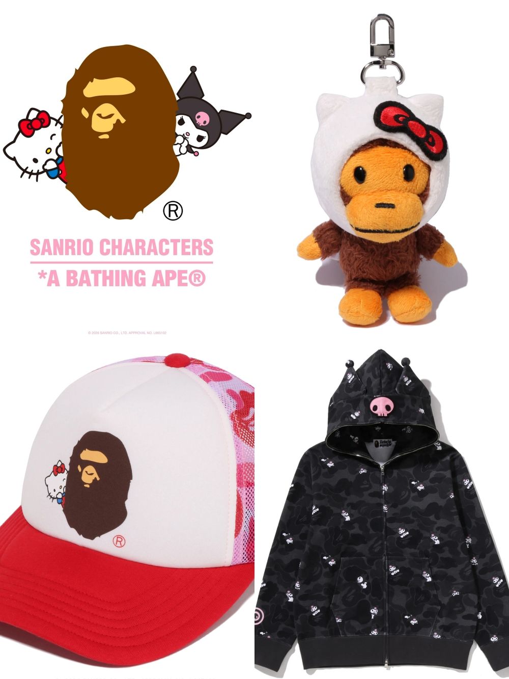 A BATHING APE聯名三麗鷗簡直瘋掉!Kitty、酷洛米「呆萌頭套」猿人吊飾一定要搶!-2